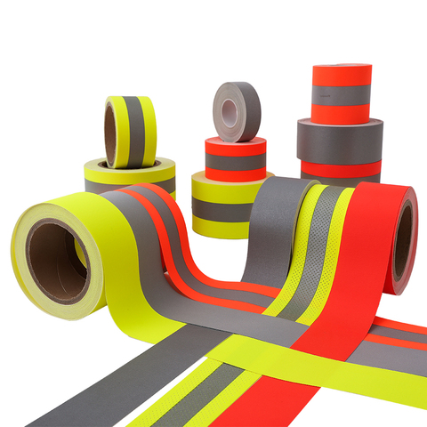 150D ริบบิ้นสะท้อนแสงมะนาว/ส้ม/300D สารหน่วงไฟที่ผ่านการรับรอง ISO20471็อกฟอร์ด360CPL ซัก25ป้ายเตือนตกแต่งเสื้อผ้า